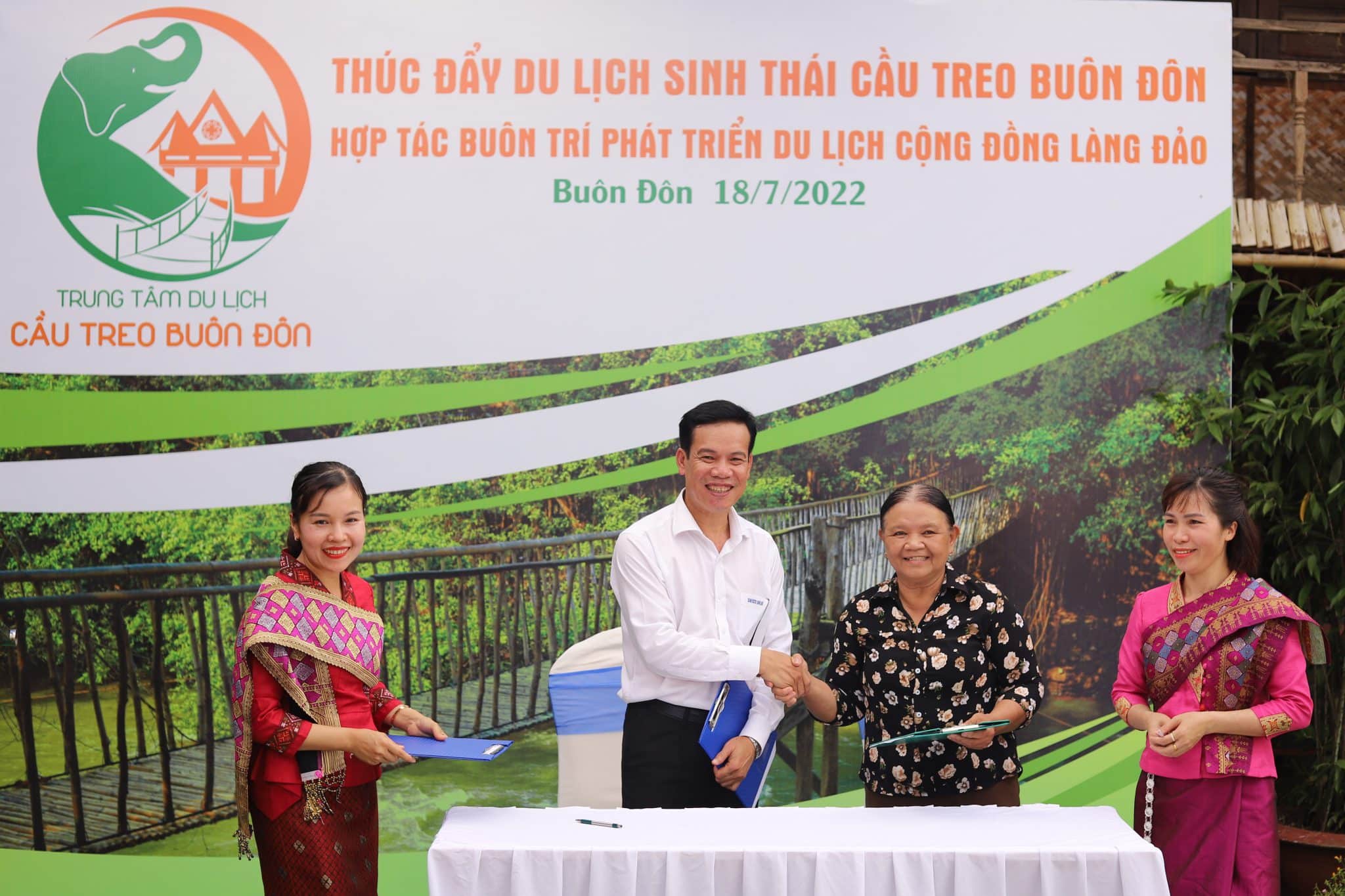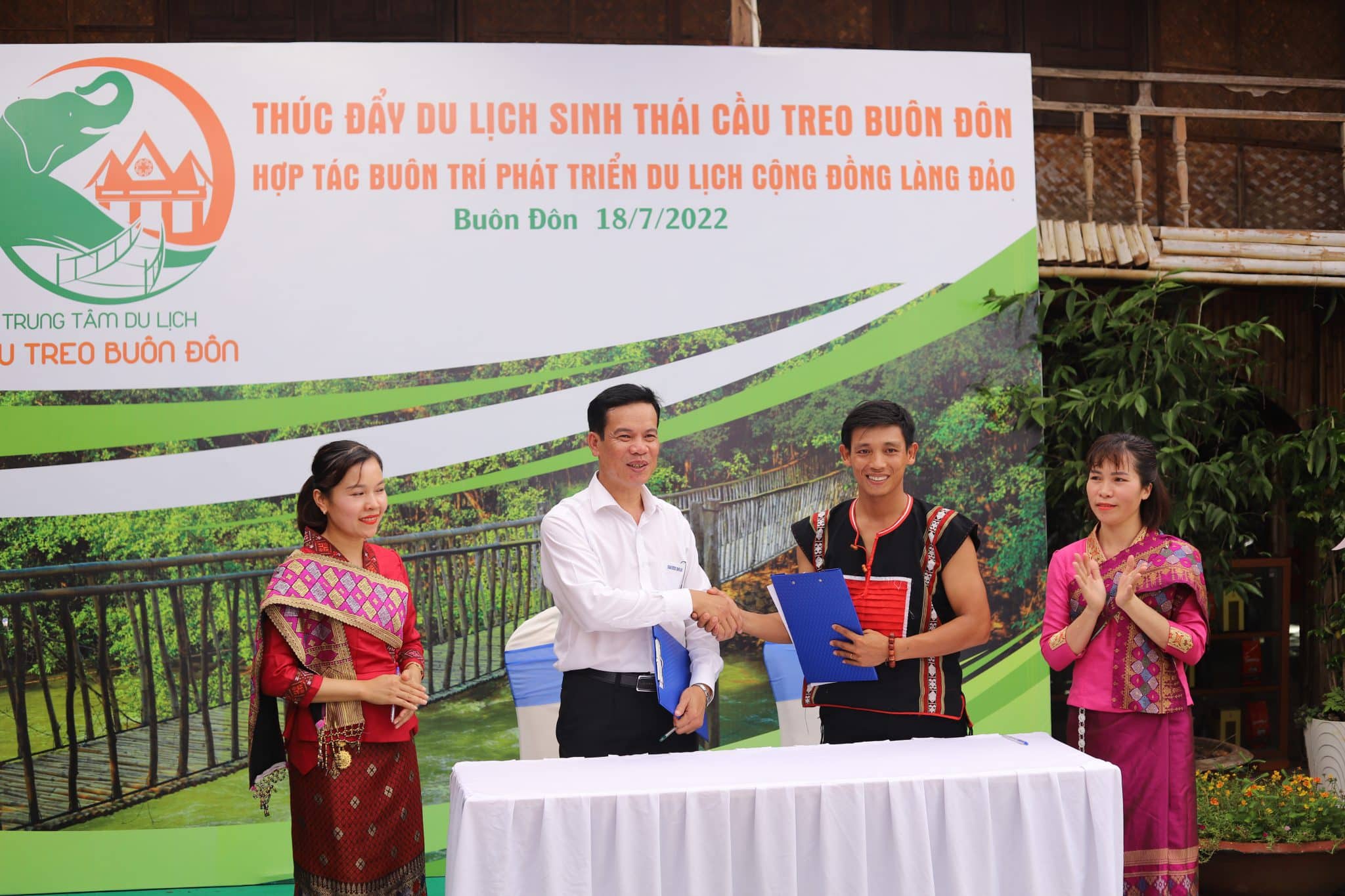 Cũng trong khuôn khổ chương trình đã diễn ra lễ kí kết biên bản ghi nhớ với Buôn về Phát triển du lịch Cộng đồng tại Buôn Trí, Xã Krông Na và kí cam kết hỗ trợ phát triển đội văn nghệ - cồng chiêng của Buôn.