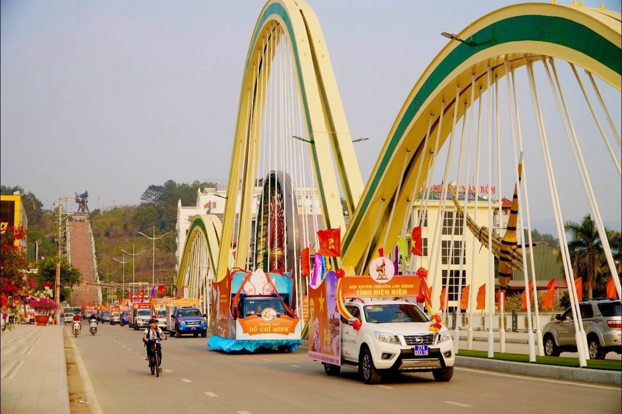 Các đơn vị tham gia diễu hành xe tuyên truyền tại tỉnh Điện Biên