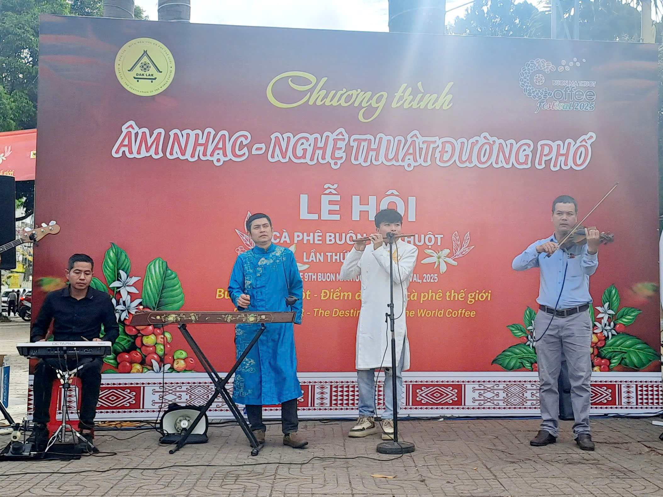Hưởng ứng Lễ hội Cà phê Buôn Ma Thuột lần thứ 9 năm 2025, từ ngày 10/3/2025 đến ngày 12/3/2025, Trung tâm Văn hóa - Du lịch tỉnh Đắk Lắk tổ chức 5 điểm diễn Chương trình Âm nhạc - Nghệ thuật đường phố trên các tuyến phố.