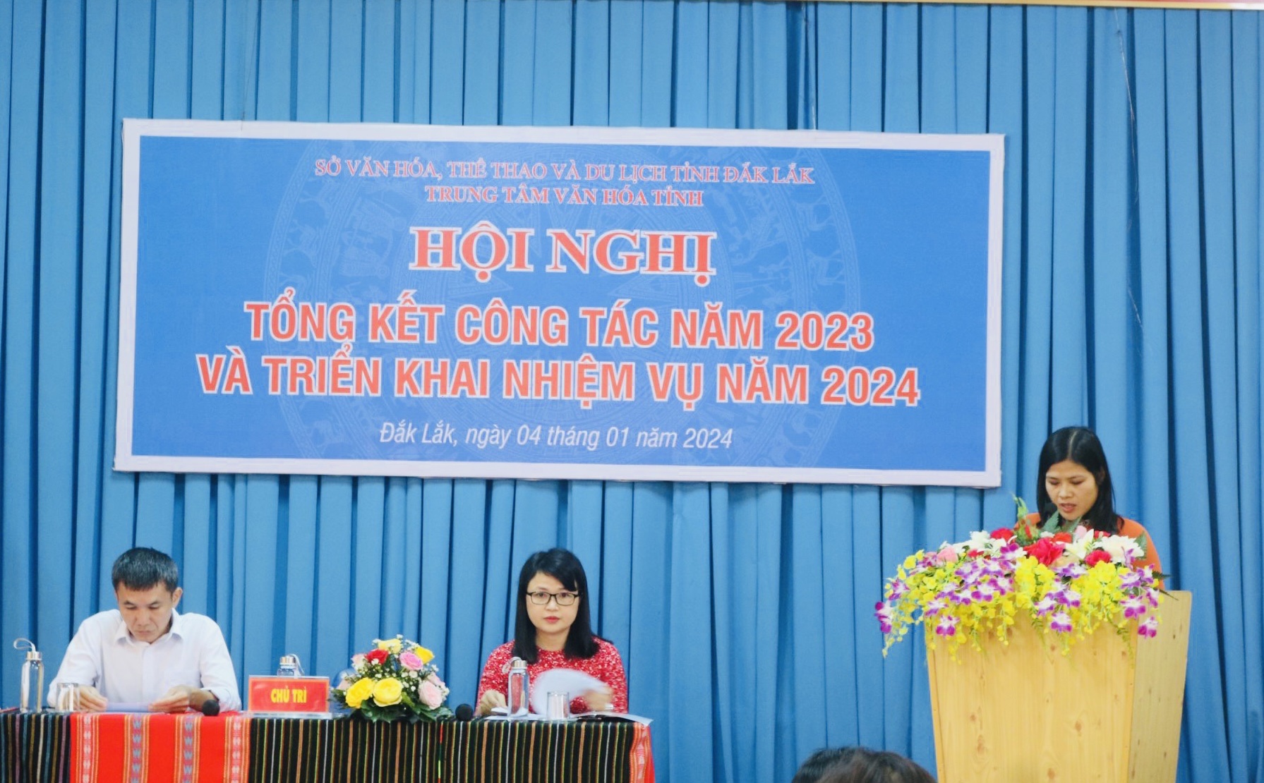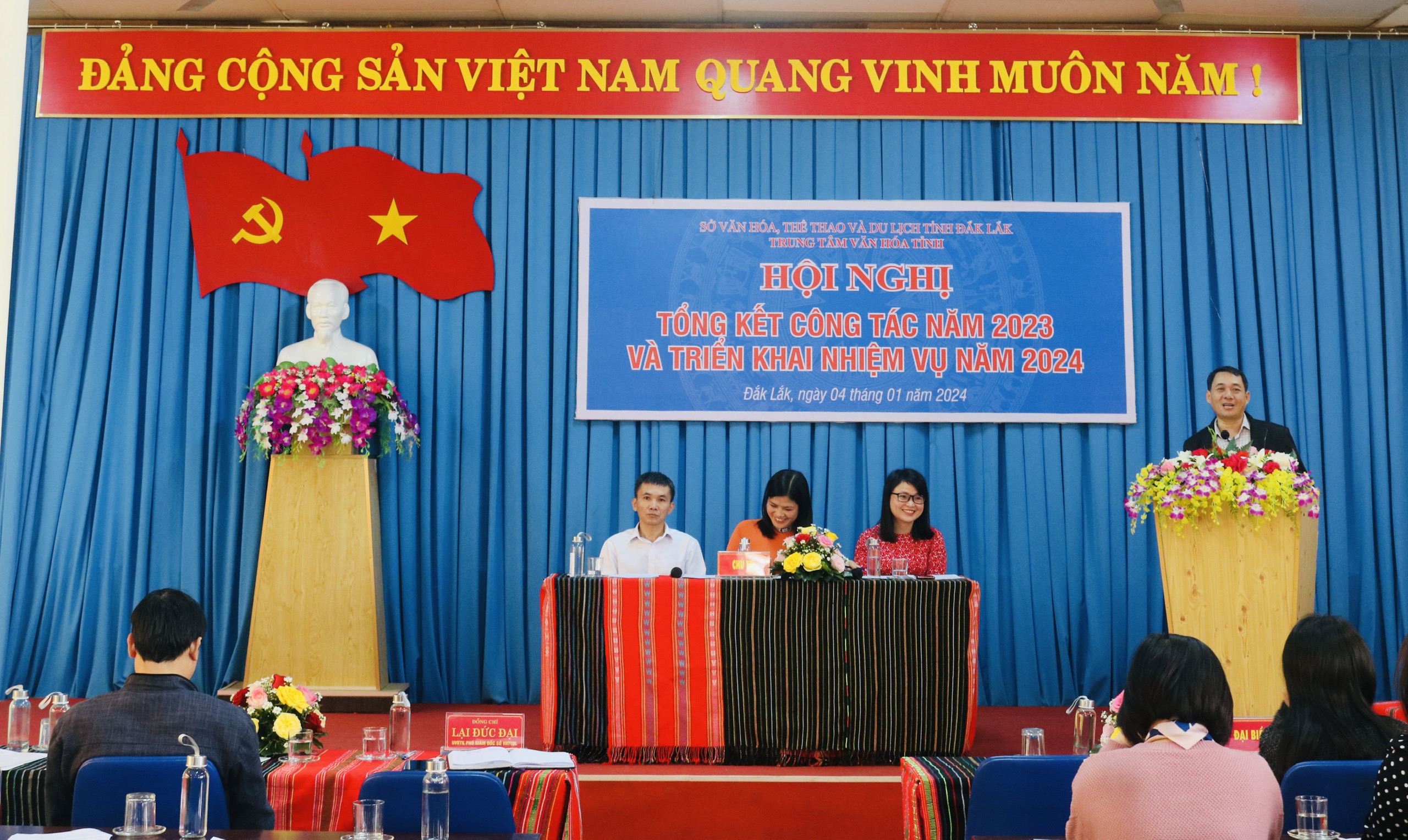 Phát biểu tại Hội nghị, ông Lại Đức Đại, Phó Giám đốc Sở Văn hóa, Thể thao và Du lịch đánh giá cao những kết quả Trung tâm Văn hóa tỉnh đạt được trong năm 2023, tổ chức được nhiều chương trình, sự kiện, hoạt động, đáp ứng nhu cầu hưởng thụ văn hóa của Nhân dân. Đồng thời đề nghị đơn vị trong năm 2024 khắc phục những khó khăn về nhân sự, xây dựng một môi trường làm việc văn hóa; đổi mới nội dung, nâng cao chất lượng các hoạt động chuyên môn, biểu diễn văn hóa, văn nghệ…đảm bảo tuyên truyền đúng chủ trương, đường lối, của Đảng, chính sách, pháp luật của Nhà nước đến đông đảo quần chúng Nhân dân.