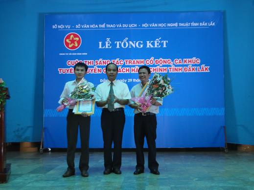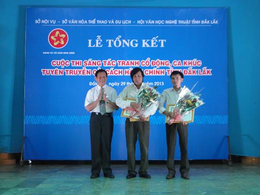 Liên ngành Nội vụ - Văn hoá Thể thao và Du lịch – Hội Văn học Nghệ thuật tỉnh vừa phối hợp tổ chức Lễ tổng kết Cuộc thi sáng tác Tranh Cổ động, Ca khúc tuyên truyền Cải cách hành chính tỉnh năm 2013 và khai mạc Triển lãm Tranh cổ về đề tài Cải cách hành chính. Sau 4 tháng phát động Cuộc thi sáng tác tranh cổ động, ca khúc tuyên truyền CCHC, Ban tổ chức đã tiếp nhận 70 tác phẩm tham gia dự thi (gồm 57 Tranh cổ động và 13 Ca khúc tuyên truyền) của các nhạc sĩ, họa sĩ chuyên, không chuyên trong và ngoài tỉnh. Các tác phẩm dự thi đã bám sát chủ đề CCHC với các nội dung như: Cải cách thể chế, cải cách thủ tục hành chính, cải cách tổ chức bộ máy hành chính nhà nước, cải cách tài chính công, xây dựng và nâng cao chất lượng đội ngũ cán bộ, công chức, viên chức …
