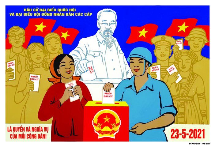 Tranh cổ động bầu cử Đại biểu quốc hội khóa XV và Đại biểu HDNN các cấp nhiệm kỳ 2021 - 2026