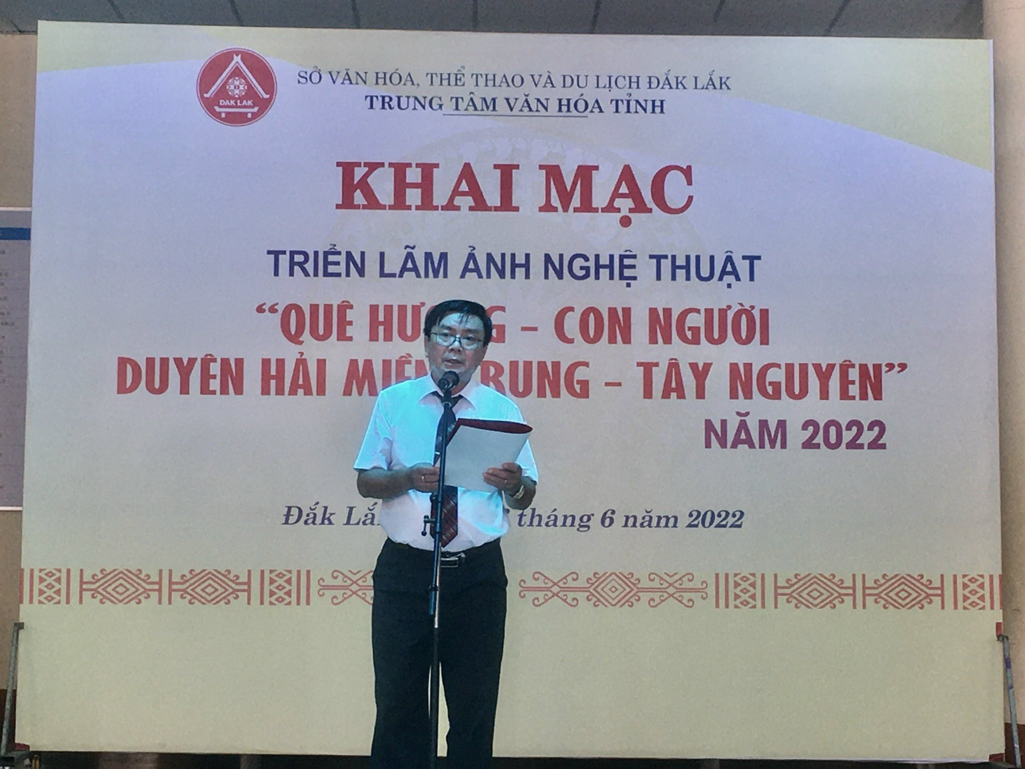 Chiều ngày 16/6, tại Trung tâm Văn hóa tỉnh Đắk Lắk, Câu lạc bộ Giám đốc Trung tâm Văn hóa Khu vực Duyên hải miền Trung - Tây Nguyên phối hợp Trung tâm Văn hóa tỉnh Đắk Lắk khai mạc Triển lãm Ảnh nghệ thuật “Quê hương - con người Duyên hải miền Trung - Tây Nguyên” năm 2022.