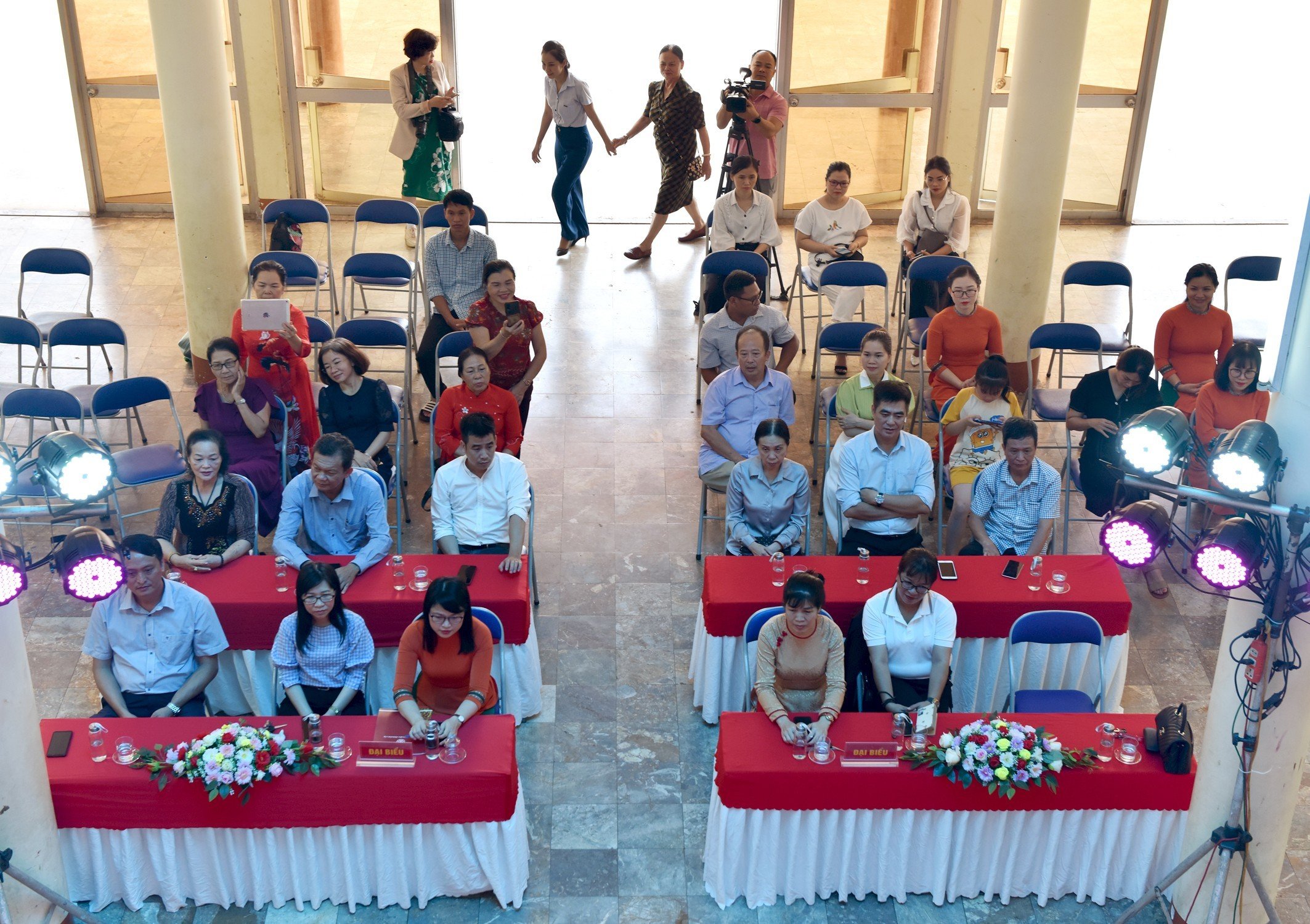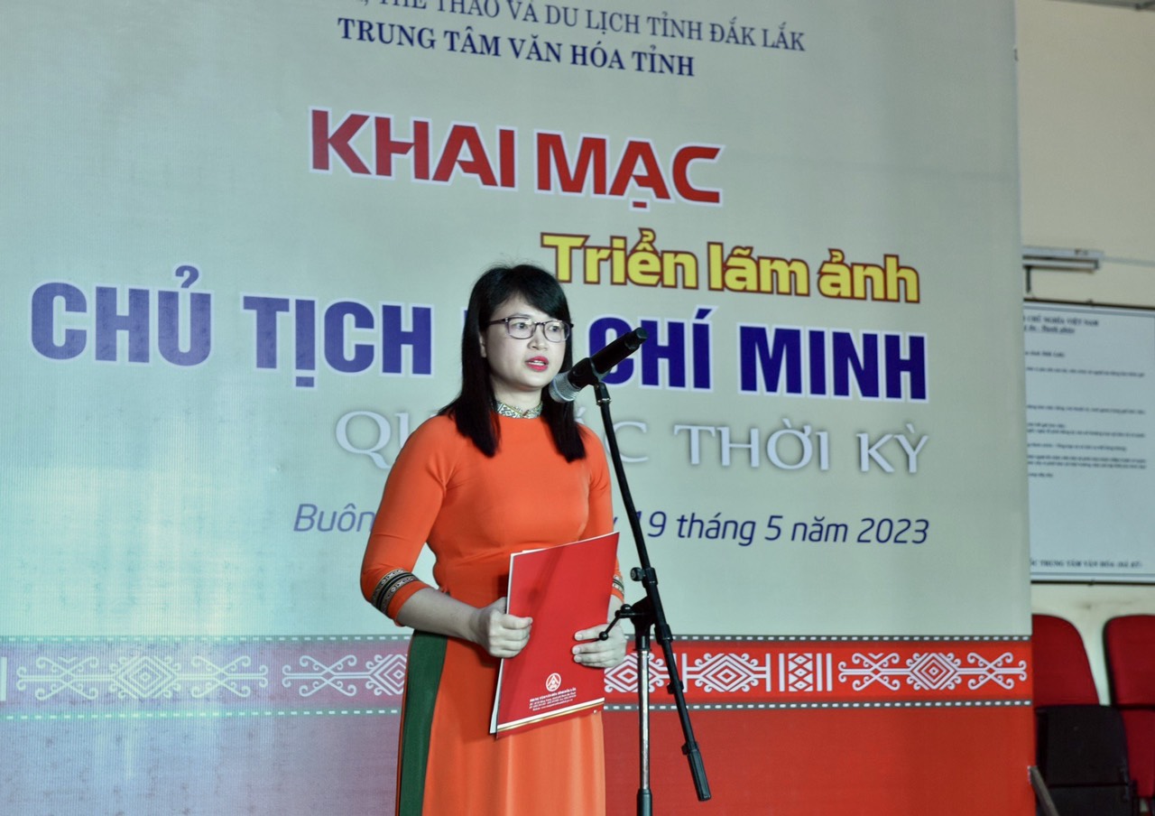 Bà Đào Thị Thu Hiền, Phó Giám đốc Trung tâm Văn hóa tỉnh phát biểu khai mạc Triển lãm