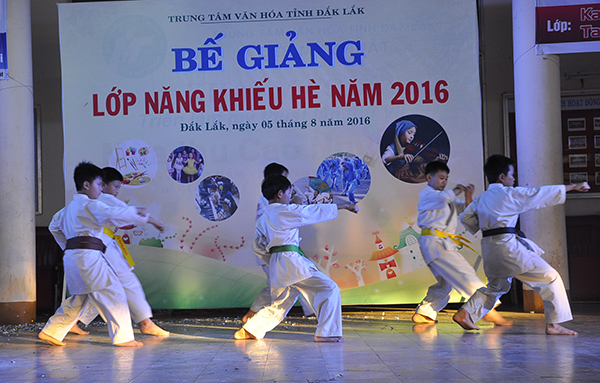 Trung tâm Văn hóa tỉnh vừa tổ chức Bế giảng Lớp năng khiếu hè 2016 và Khai giảng các lớp năng khiếu mới. Lớp năng khiếu hè 2016 Trung tâm văn hóa tỉnh đã thu hút được hơn 300 em học viên tham gia ở các lớp: Organ -Trống, Piano, Violon, Guitar, Thanh nhạc, Nhảy hiện đại, Earobic, hội họa thiếu nhi, Karate, Vovinam, Taekwondo, Thiếu lâm tự, Người mẫu thời trang và Luyện thi vào các trưởng cao đẳng, đại học…