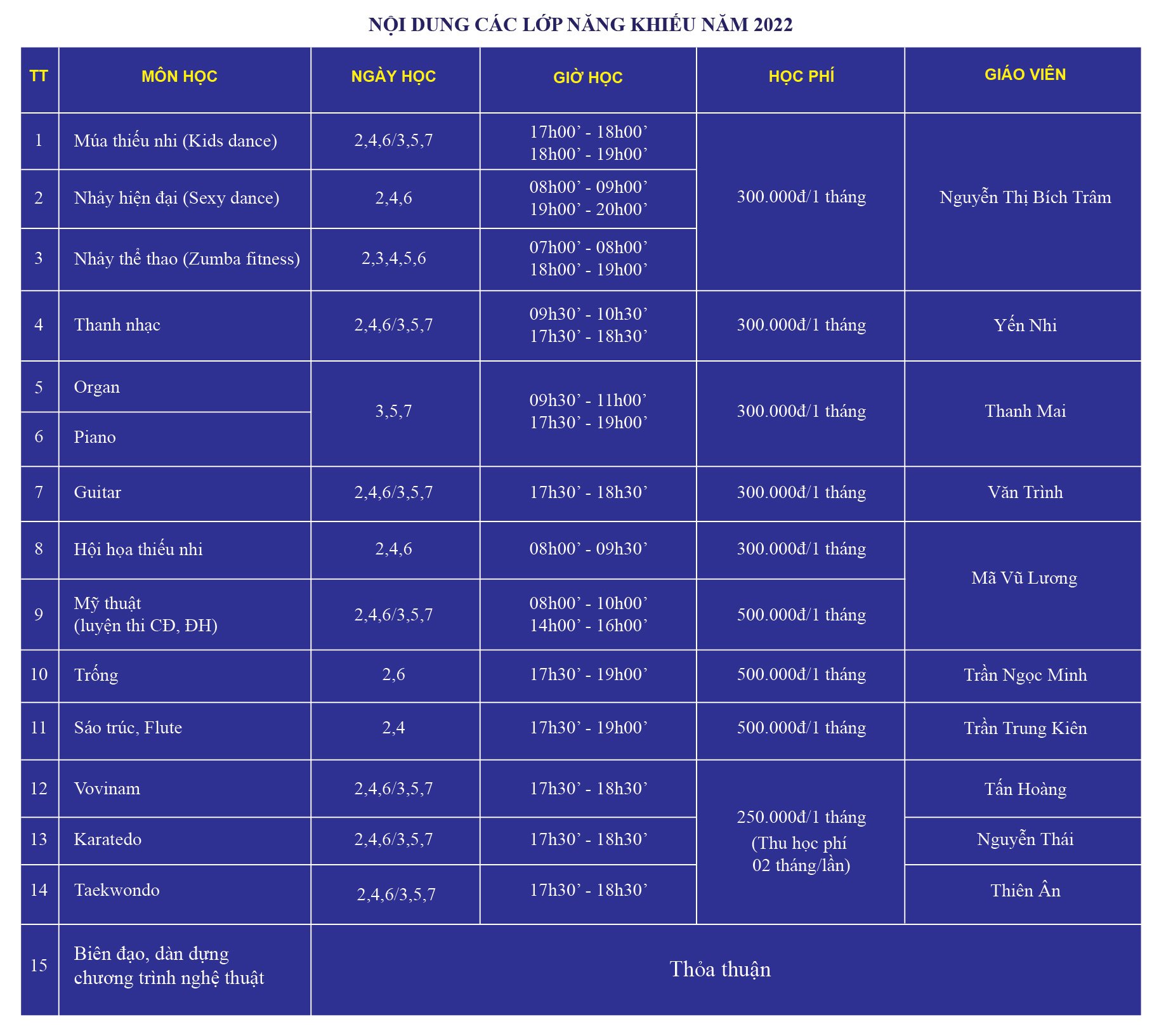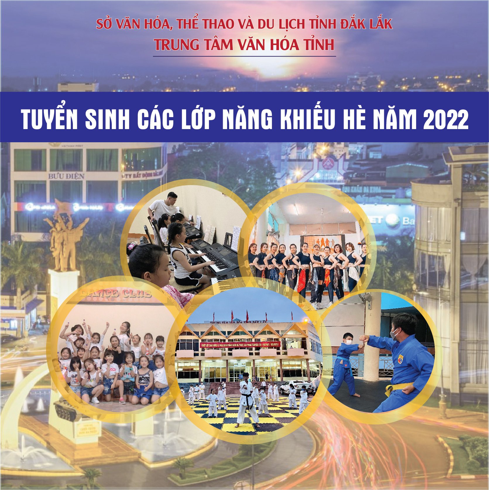 Nhằm tạo môi trường học tập, rèn luyện thể chất cho quần chúng Nhân dân, đặc biệt là thanh thiếu niên, Trung tâm Văn hóa tỉnh đang chiêu sinh khóa hè năm 2022. Với nhiều môn học năng khiếu như: Nhảy, múa, thanh nhạc, Organ, Piano, Trống, hội họa, võ Vovinam, Takatedo... ở nhiều khung giờ khác nhau sẽ giúp học viên có sự lựa chọn phù hợp với sở thích và điều kiện gia đình.