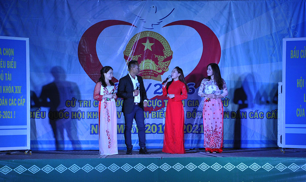 Chương trình được dàn dựng công phu, gồm: kịch thông tin, tấu hài, hỏi đáp về Luật bầu cử xen kẽ là những tiết mục văn nghệ với chủ đề ca ngợi Đảng, Bác Hồ, quê hương đất nước nhằm chuyển tải những nội dung liên quan đến cuộc bầu cử đến cán bộ, đảng viên và quần chúng nhân dân. Đồng thời kết hợp tuyên truyền các chủ trương, chính sách của Đảng, pháp luật của Nhà nước đến với đồng bào dân tộc thiểu số ở vùng sâu, vùng xa. Qua đó khơi dậy lòng yêu nước, tinh thần đoàn kết của các tầng lớp nhân dân, luôn tin tưởng tuyệt đối vào sự lãnh của Đảng, Nhà nước, tăng thêm sự gắn bó giữa Đảng và nhân dân.